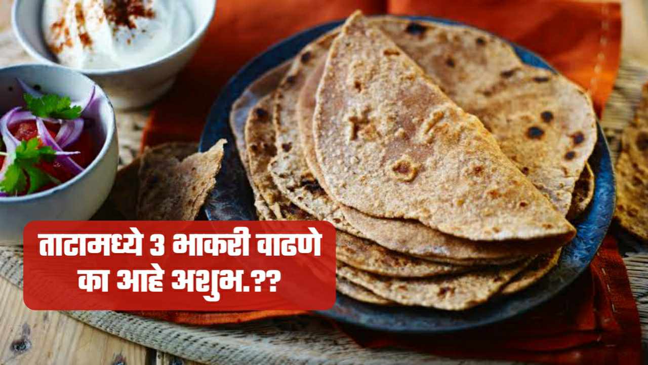एका ताटात तीनभाकरी वाढणेअशुभ मानले जाते, म्हणूनच जर एखाद्याला आवश्यक असल्यास तीन भाकरी द्याव्या लागतील तर एक भाकरी दोन भागांत अर्धी-अर्धी करून दिली जाते जाणे त्या चार मानल्या जातात. तर आज आपण यामागे नक्की काय सत्य आहे हेच जाणून घेणार आहोत.