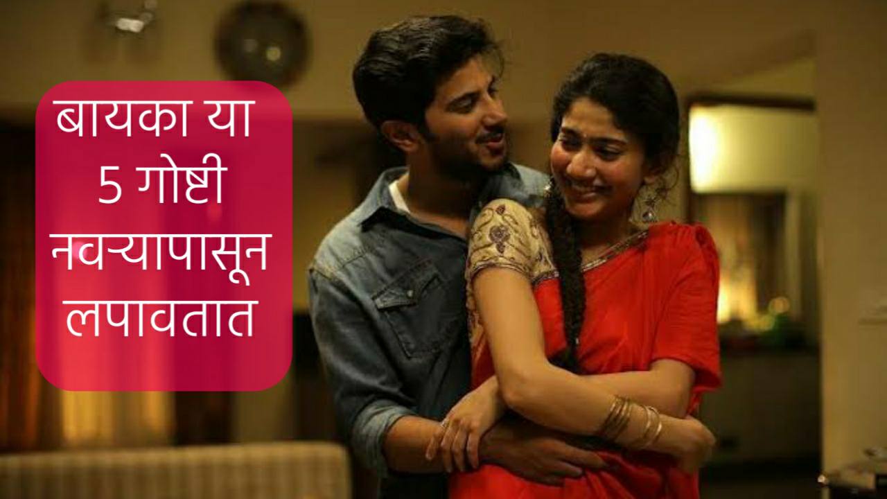 नमस्कार मित्रांनो DarjaMarathi वर आपल्या सर्वांचं स्वागत आहे. असं म्हणतात वैवाहिक जीवनात पती आणि पत्नीने सर्व गोष्टी म्हणजेच सुखं दुःख एकमेकांसोबत शेअर केले पाहिजेत, आणि असं करणं बरोबरही असतं. याने संसारीक जीवन सुखमय बनत. पण तुम्हाला माहिती आहे? बायको या ५ गोष्टी नवऱ्यापासून लपवते. या गोष्टी नवऱ्यासोबत शेअर करणं ती ठीक समजत नाही. तर चला जाणून घेऊया कोणत्या ५ गोष्टी असतात ज्या नवऱ्यापासून बायका लपवून ठेवतात.